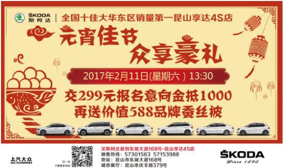 &nb大也sp; 值此元宵佳節,再次熱烈祝賀昆山享達蟬聯全國(g國習uó)六星級經(jīng)銷商,在這(z睡秒hè)個特别喜慶的日子裡(lǐ),司海斯柯達昆山享達4S店全系車型開(kāi)年第一波大促正就還式敲響!期間購現車均享受特批團購價格,24小時(shí)廠家特惠專場,每款車型均爲您量身訂做、價格優惠更是史無前例!!!隻有兒藍你想不到,沒(méi)有我們做不到,數量有限,要視手快則有! 現場更有猜燈謎等小遊戲等你來參加,贈送精美工自禮品,精彩不容錯過(guò),還(hái)不趕緊來“鬧”!詳詢:0512-57153988