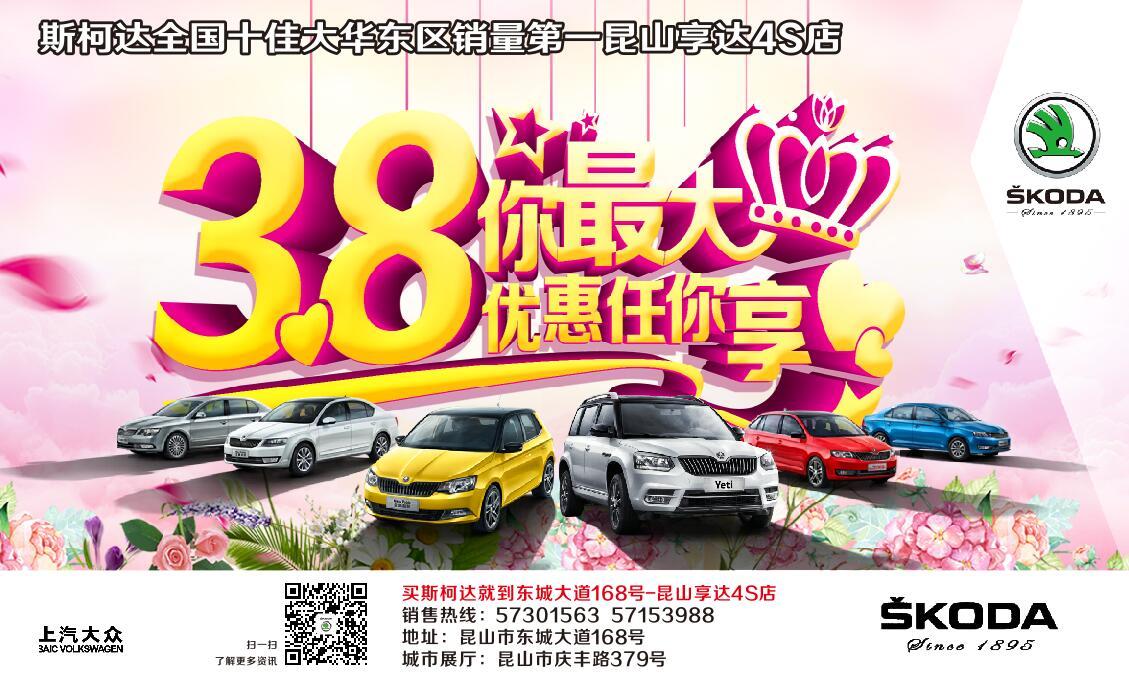 3?8女人節,昆山享達美麗大放“價”,值此佳節再次熱烈祝賀昆山享達蟬聯全國(guó)十佳六星級經(jīng)銷商,勇奪大華東區第一名的佳績。廠家聯合昆山享達抄底是花大放價,盡在3月5日14:00-16:00,優惠不容錯過(guò)!