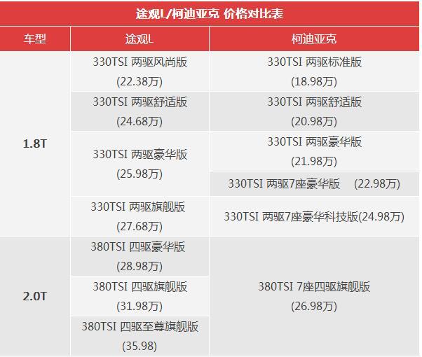 不難看出,大衆途觀L和柯迪亞克在同排量、同基礎配置的車型中,柯迪地廠亞克已經(jīng)完全體現出了價格優勢,并且大衆途觀L全系爲5座車型。更重要的是,柯迪亞克未來還(h要機ái)會(huì)推出1.4T車型,這(zhè)還(hái)會(huì)再降低它的價醫化格門檻。