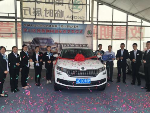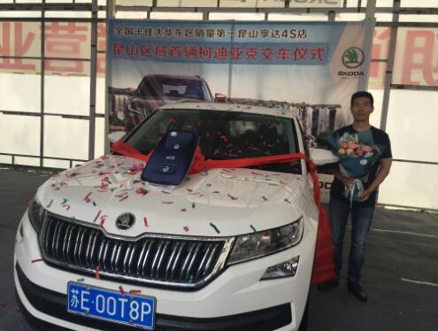 附上車主與柯迪亞克合影照,最後(hòu)送上昆山享達斯柯達真誠的祝福:祝內煙您一路平安!您的旅途將(jiāng)由柯迪亞克陪您去走完!