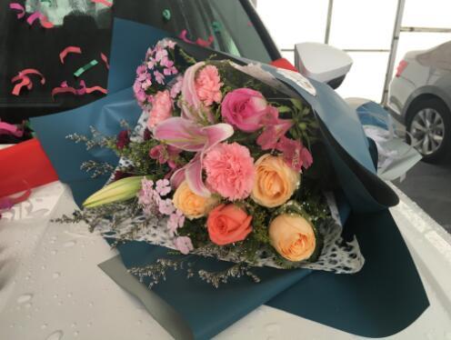 在鮮花、禮花炮、大紅花的映襯下,我們但家將(jiāng)鑰匙交入了車主的手中……