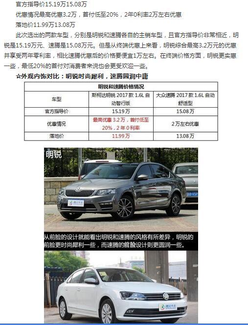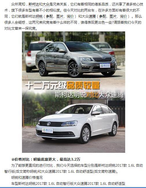 12萬元品質較量 斯柯達明銳對(duì)比大衆速騰