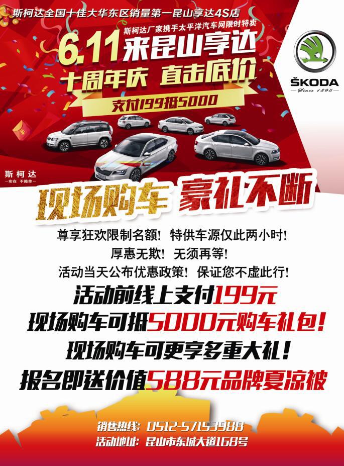 汽車銷售淡季來臨了,您的最佳購車時(shí)機到來啦!不用等作吧到車展去擠人群,不用等到旺季去4S店磨價,6月11日13:30-15:30昆山享達斯柯達聯合太平洋汽車網啓動超級能城特賣會(huì)!