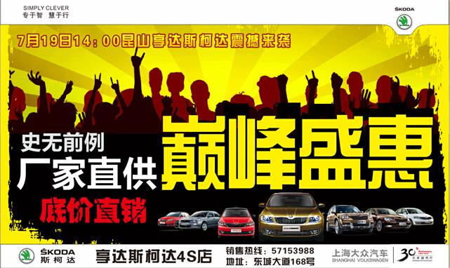 爲讓更多的家庭和愛車人士提前享受有車生活,酷暑七月,上海大衆斯柯達昆山購窗享達4S店重拳出擊,聯合上海大衆斯柯達廠家傾情打造“廠家直銷限時(shí)底價團購會(huì資議)”活動,7月19日,冰點特惠,限時(shí)限量,價格隻有您想不到照道,沒(méi)有我做不到。