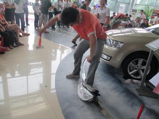客戶親身上場表演砸大燈,但是在幾錘子下去之後(hòu),大燈完好(hǎo關商)無損,引來現場一片熱潮!