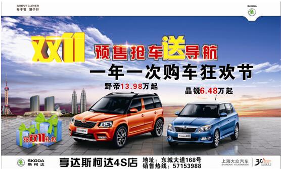 即日起(qǐ)至11月8日,昆山享達斯柯達提前引爆雙11巅峰大促,提前預售搶購已經(jīng)開(kāi)啓,隻需提機要前支付定金,不僅可獲得預售認籌大禮,還(hái)可雨她參與11月8日下午13:30在展廳舉辦的瘋狂價搶車會(huì),底價一定超乎您的想象!晶銳6.48萬起(qǐ),野帝13.98萬起(qǐ),馬上報名57153988!