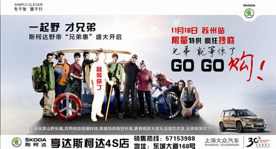 萬衆期待,狂野驚喜隻在11月16日——斯柯達野帝兄弟惠,即將(jiāng)重磅登場!大華東蘇錫區13家經(jīng)銷商將(jiāng)同時(shí)舉辦野帝“兄弟惠”狂野钜惠活動,挑戰野雪要帝最“低”價,還(hái)有更多優惠政策等著(zhe工自)您,限量搶購車型“真正一車一價”,錯過(guò)將(jiāng票那)後(hòu)悔一輩子!一波超值钜惠再次襲卷全城!子要親!您準備好(hǎo)了嗎?搶購熱線:0512-57153988