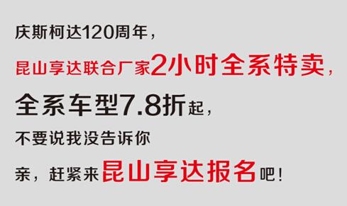 昆山享達斯柯達882小時(shí)全系特賣會(huì)全系車我你型7.8折起(qǐ)