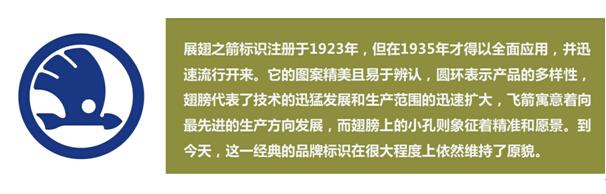 進(jìn)入上世紀30年代中期,斯柯達蓬勃發(fā)展,銷量急劇上升。1935年,斯柯達正式啓用了展翅之箭作爲品牌标識。
