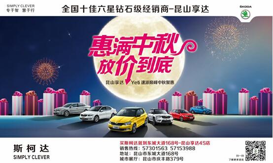 中秋佳節,帶著(zhe)你的家人和孩子一起(qǐ)回家過(guò)個團圓日吧!雜樂926日—927,昆山享達幫你圓中秋團圓夢,這(高區zhè)個周末斯柯達Yeti&速派巅峰中秋聚惠,“惠”滿中秋,放“價”到底,決不讓你空都術手而歸!