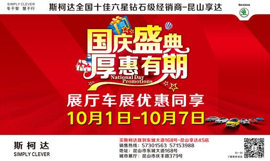 10月1日-10月7日,昆山享達斯柯達展廳與車展優惠白內同享!