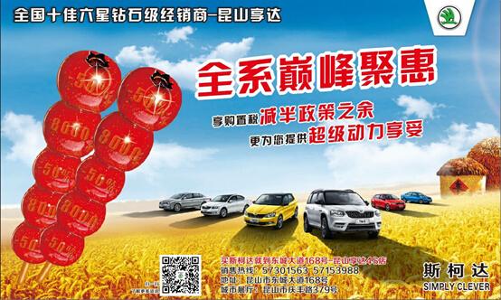 從2015年10月1日到2016年12月31日,對(duì)購買1.6升及以下排量乘用車實施減半征收車輛購置稅的優惠政策。年身10月31-11月1日,值此購置稅減半政策之餘,來昆山享達購車最高可省10000元,全系讓利巅峰聚會(huì),我們幫你省到底,兩(liǎng)年0利率信貸更可省12000元,限量特惠車等你來搶,禮包、紅包送不停……金秋十月,帶上你的TA,開(kāi)著(zhe)你的愛車吃我,來一場說(shuō)走就(jiù嗎高)走的旅行!