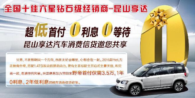 Yeti2016款12.98萬起(qǐ),首付僅需3.5萬,勁享2年0利率信貸禮遇,更有1.4T、1.6L車型享受國(guó)家購置稅減半政策。