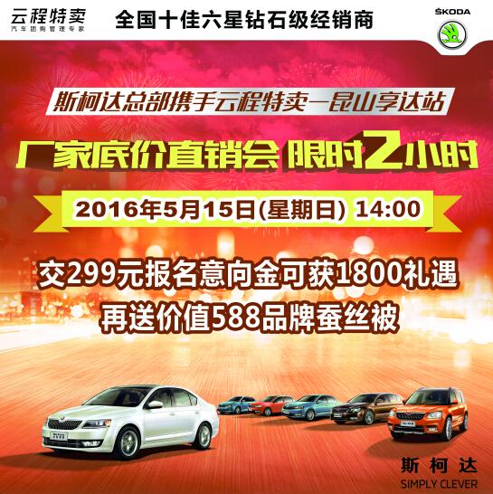 5月15日下午14:00,瘋狂2小時(shí),就(jiù)在昆山享達斯柯達,你還員她(hái)在等什麼(me)?名額有限,抓低可緊來報名吧!
